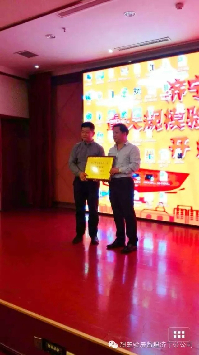 翹楚驗房監理網濟寧分公司總經理賀發表致辭并且接受濟寧市城鄉建設局主任向企業授牌儀式